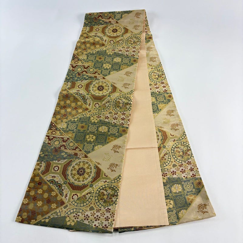 普段使いでお使いいただける袋帯でございます。 カジュアルな装いに合わせてお使いください。 締め跡がございます。 リユース品としては良い状態で、まだまだご活用頂けると思われます。 ※なお、厳しく商品の状態確認を行っておりますが、記載の汚れ以外にも見落とし箇所がある可能性がある旨ご了承いただけますと幸いです。 沢山の商品の中からご覧いただき誠にありがとうございます。 ※保管によるにおい移りがございます。