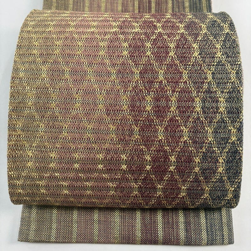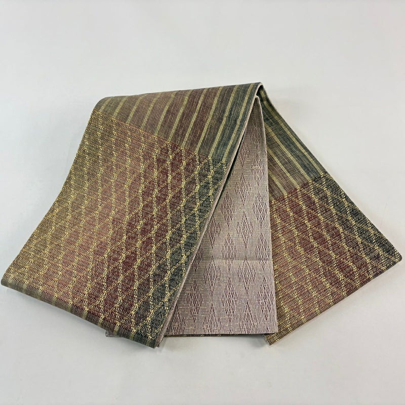 セミフォーマルでお使いいただける袋帯でございます。 見る人に重たい印象を感じさせない女性ならではの、気品豊かな一品です。 締め跡がございます。 リユース品としては目立った染み傷なく、状態の良いお品でございます。 ※なお、厳しく商品の状態確認を行っておりますが、記載の汚れ以外にも見落とし箇所がある可能性がある旨ご了承いただけますと幸いです。 沢山の商品の中からご覧いただき誠にありがとうございます。