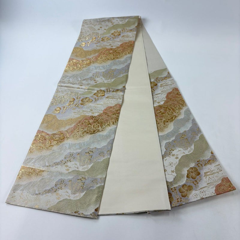 【袋帯】 白系 ベージュ 秀品 B 帯丈436cm以上 4000-7980 二万以下