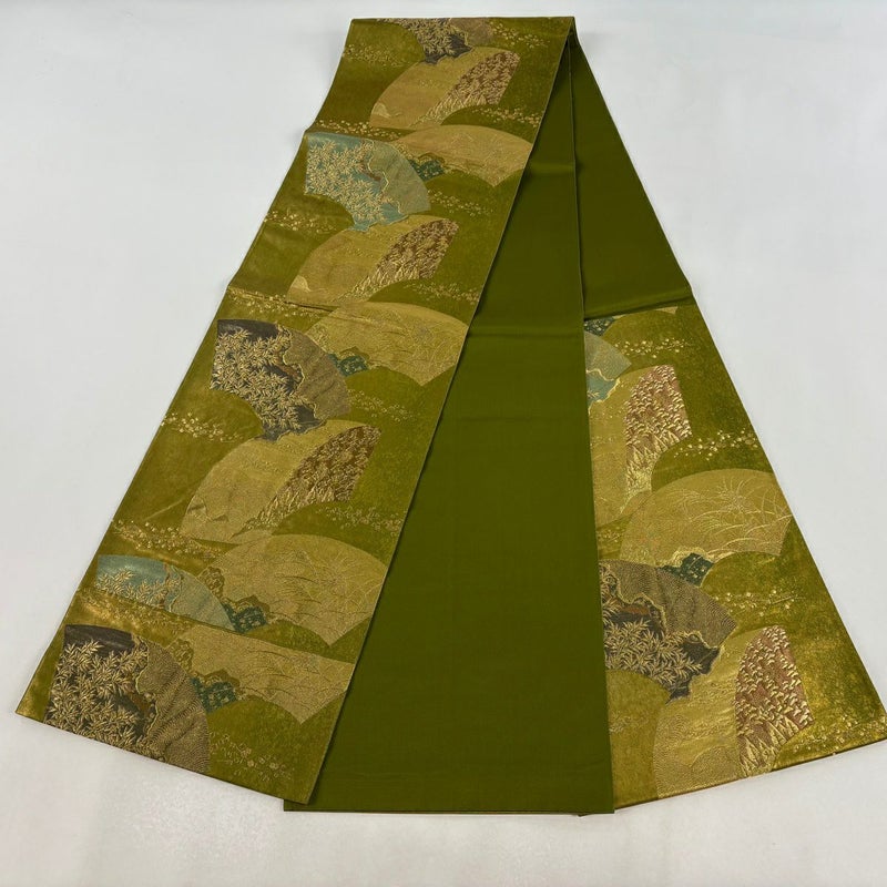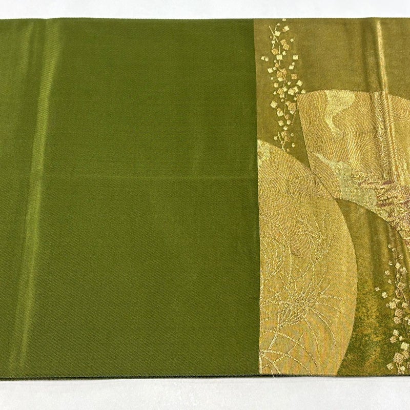 【袋帯】 緑系 よもぎ色 名品 A 帯丈436cm以上 9990-29990 美品 二万以下