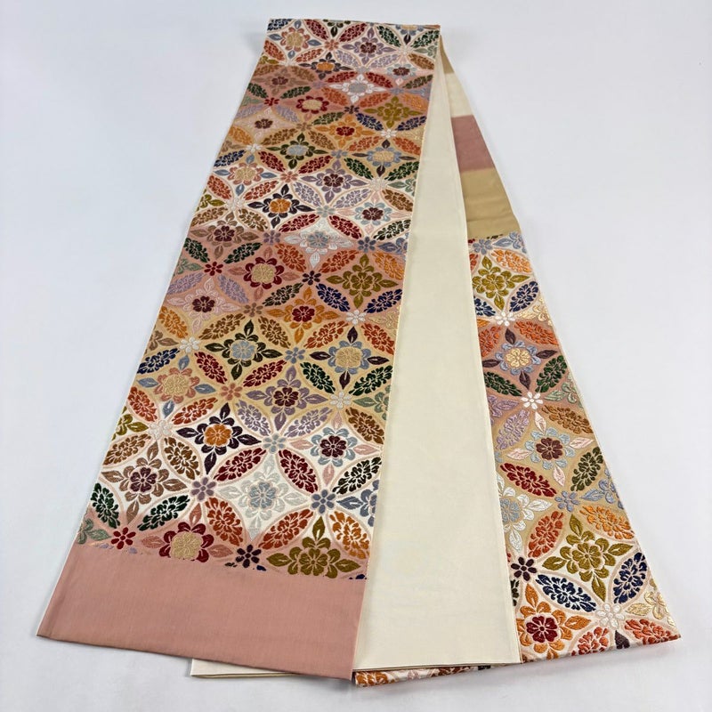 【袋帯】 赤系 ピンクベージュ 名品 B 帯丈436cm以上 4000-7980 二万以下