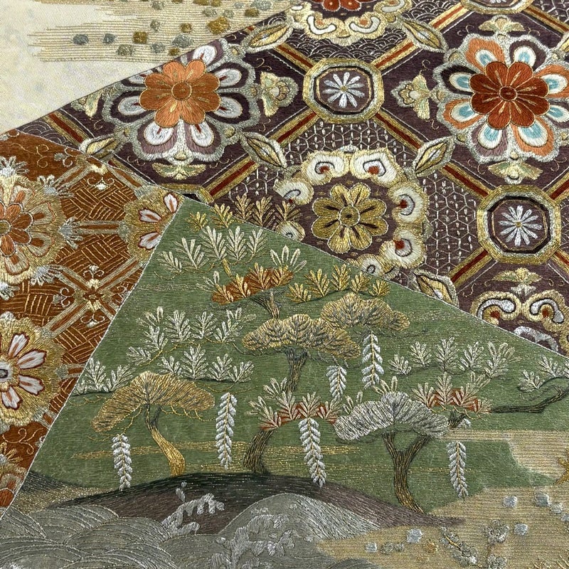 中国工藝美術大使である「蒋雪英」の作品です。 セミフォーマルでお使いいただける袋帯でございます。 見る人に重たい印象を感じさせない女性ならではの、気品豊かな一品です。 締め跡がございます。 表地所々に金彩の変色、お太鼓所々と前柄所々に金銀糸の変色がございます。 リユース品としては良い状態で、まだまだご活用頂けると思われます。 ※なお、厳しく商品の状態確認を行っておりますが、記載の汚れ以外にも見落とし箇所がある可能性がある旨ご了承いただけますと幸いです。 沢山の商品の中からご覧いただき誠にありがとうございます。