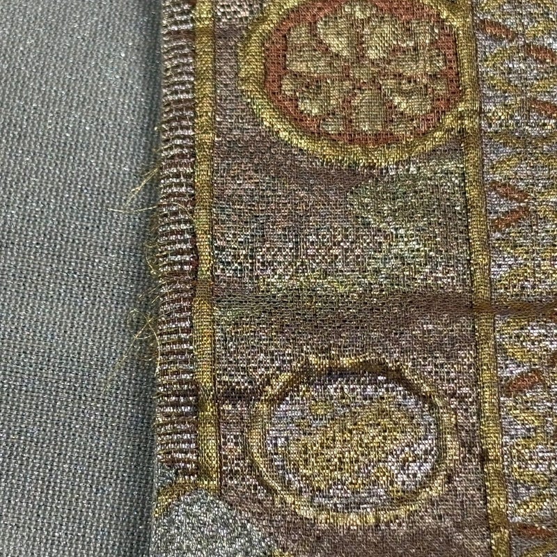 セミフォーマルでお使いいただける袋帯でございます。 見る人に重たい印象を感じさせない女性ならではの、気品豊かな一品です。 帯芯が入っておりません。 締め跡がございます。 お太鼓垂先間に生地のヨレ、柄止まりと前柄お太鼓間所々に糸のほつれがございます。 リユース品としては良い状態で、まだまだご活用頂けると思われます。 ※なお、厳しく商品の状態確認を行っておりますが、記載の汚れ以外にも見落とし箇所がある可能性がある旨ご了承いただけますと幸いです。 沢山の商品の中からご覧いただき誠にありがとうございます。