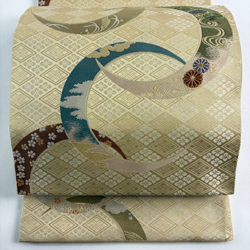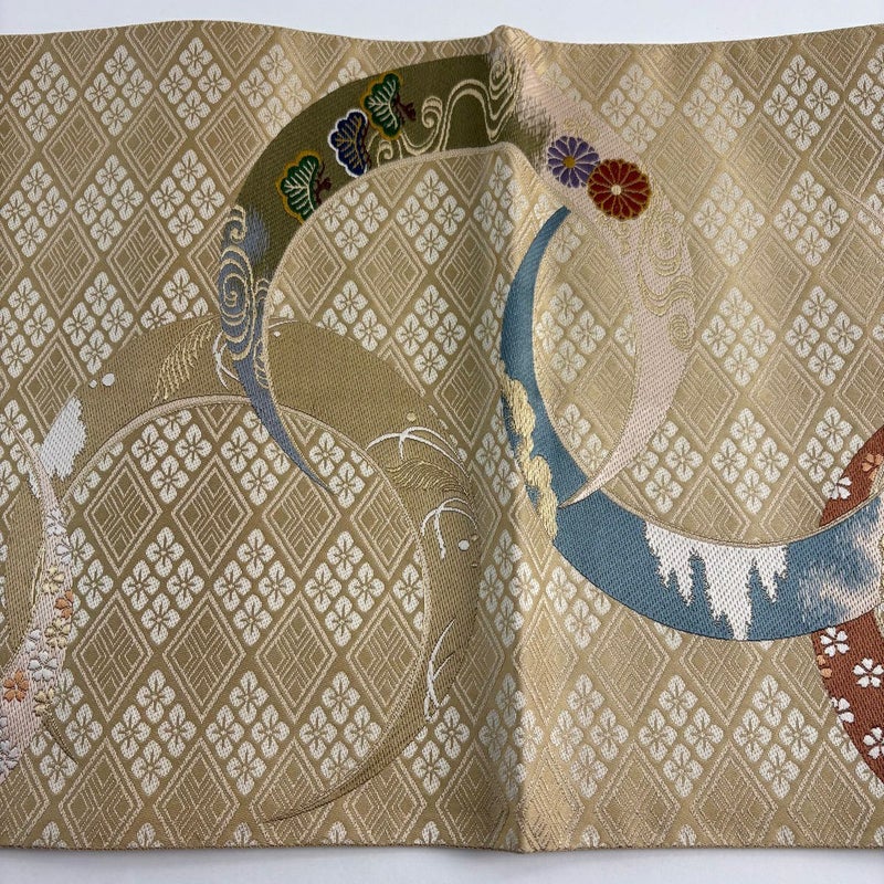 【袋帯】 白系 ベージュ 秀品 A 帯丈436cm以上 7990-9980 美品 二万以下