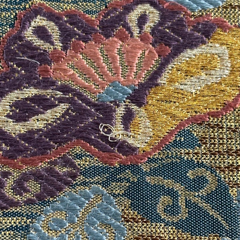 おめでたい席に相応しい意匠の袋帯でございます。 格式高いお席にもお使いいただけますので、お見逃しのないようお願いいたします。 締め跡がございます。 お太鼓柄に金糸の緩み、表地所々に刺繍の糸緩みがございます。 リユース品としては良い状態で、まだまだご活用頂けると思われます。 ※なお、厳しく商品の状態確認を行っておりますが、記載の汚れ以外にも見落とし箇所がある可能性がある旨ご了承いただけますと幸いです。 沢山の商品の中からご覧いただき誠にありがとうございます。 【PR2】