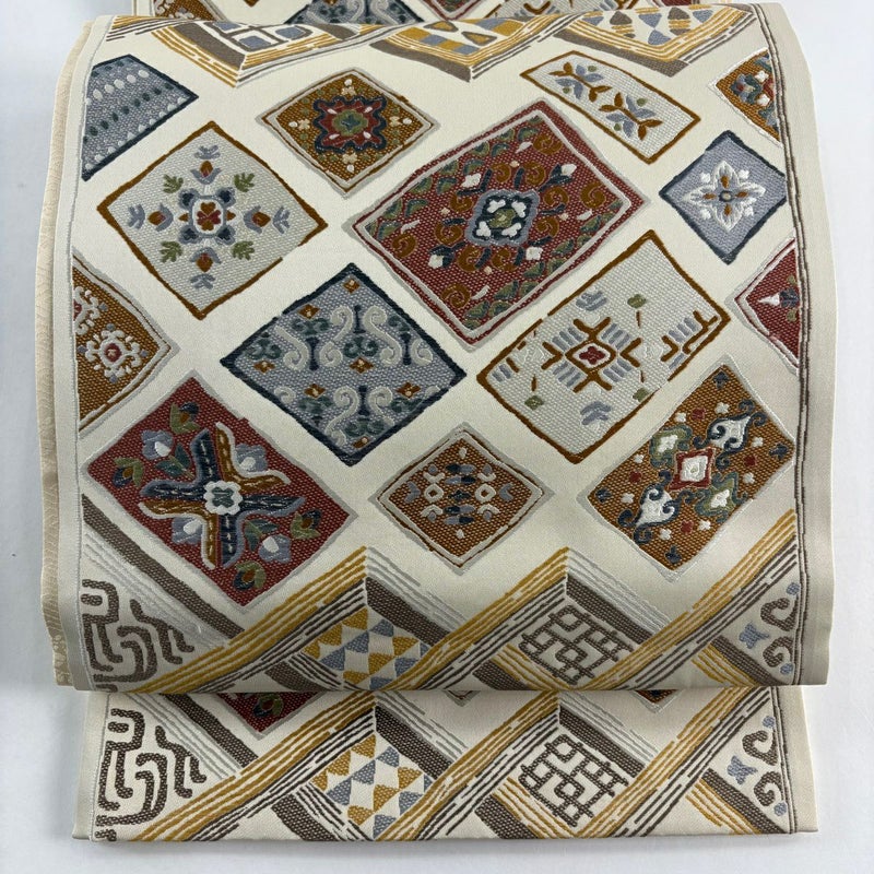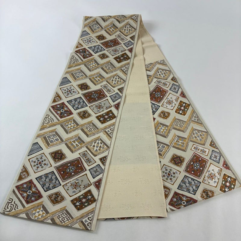 【袋帯】 白系 ベージュ 秀品 A 帯丈436cm以上 7990-9980 美品 二万以下