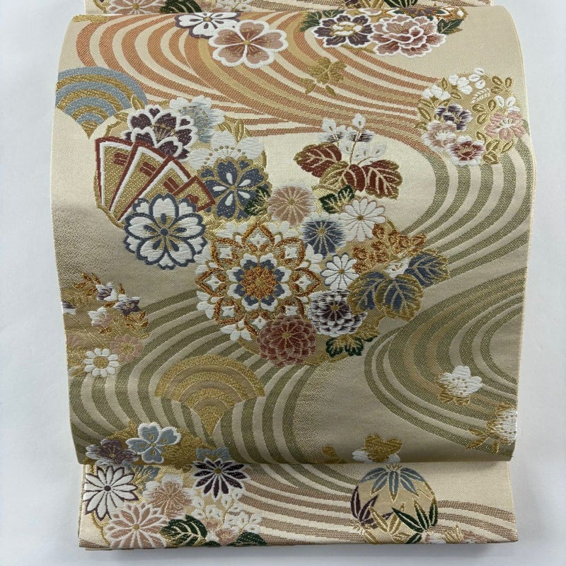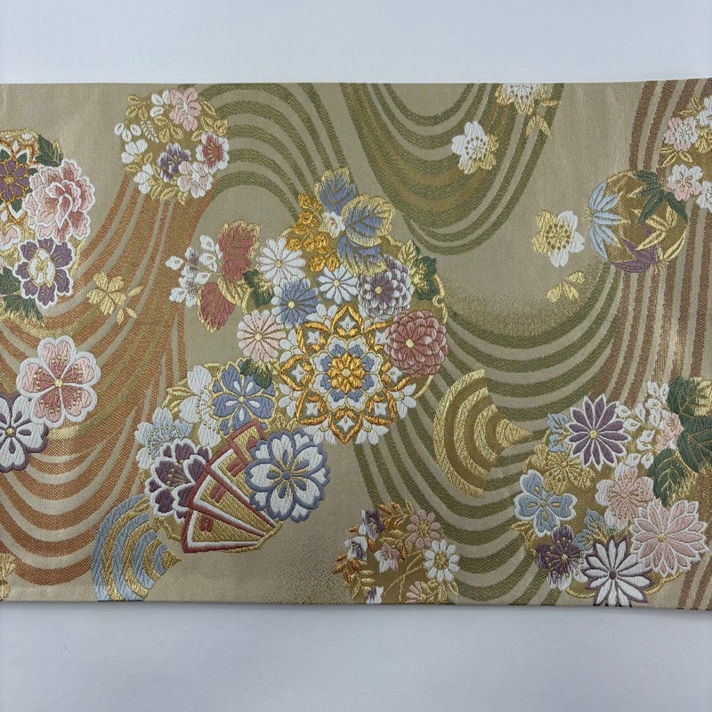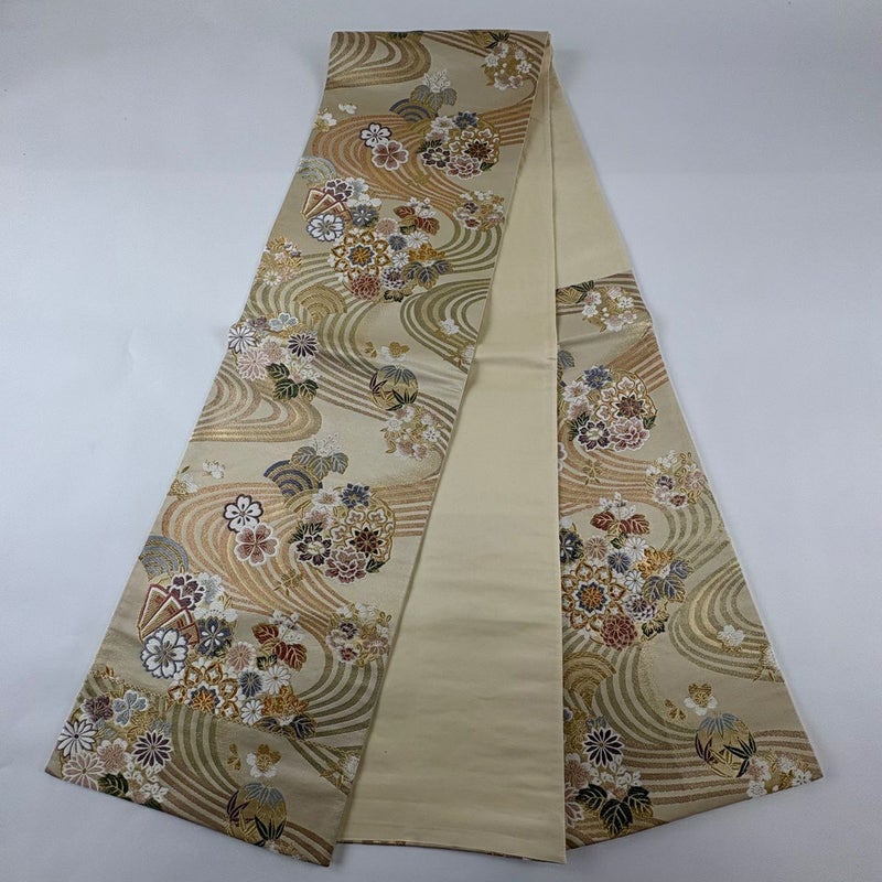 【袋帯】 白系 ベージュ 秀品 A 帯丈426cm~435cm 7990-9980 美品 二万以下