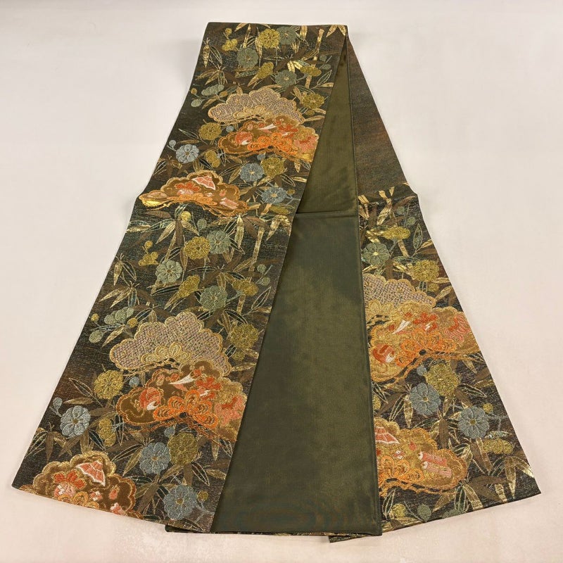 【袋帯】 緑系 深緑 秀品 A 帯丈426cm~435cm 7990-9980 美品 二万以下