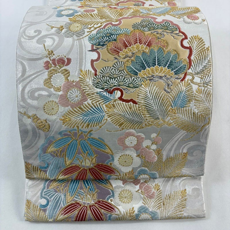 【袋帯】 金・銀系 銀色 秀品 A 帯丈436cm以上 7990-9980 美品 二万以下