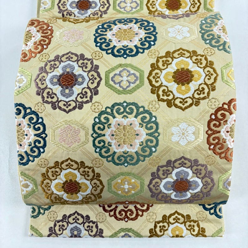 【袋帯】 白系 ベージュ 名品 B 帯丈426cm~435cm 4000-7980 二万以下