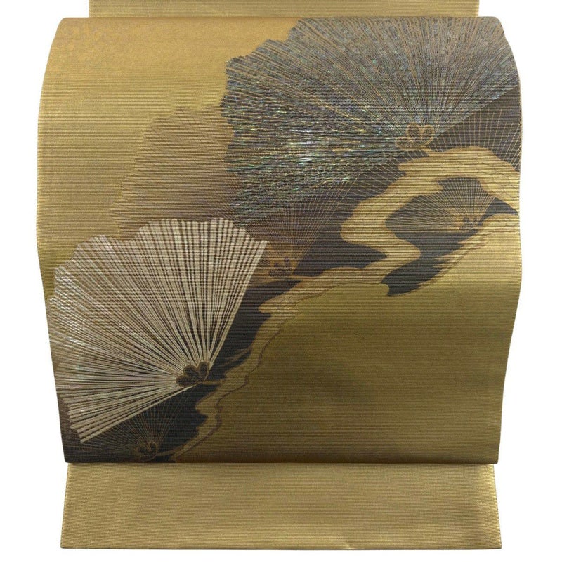 【美品】 袋帯 秀品 松 箔 金色 お太鼓柄 正絹
