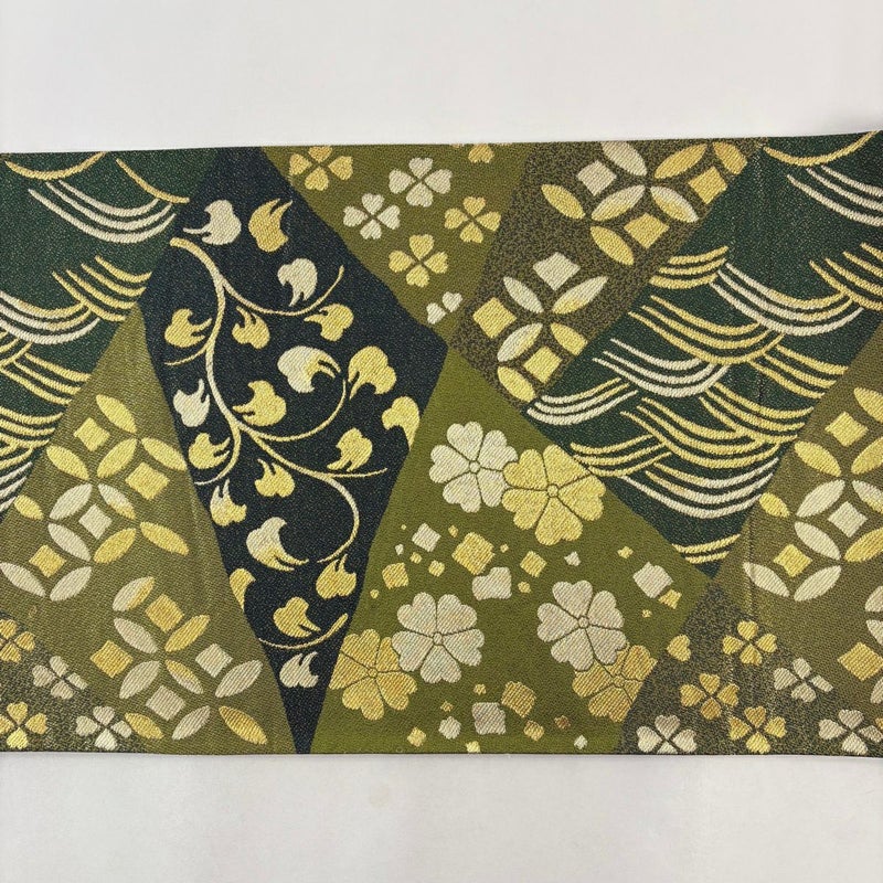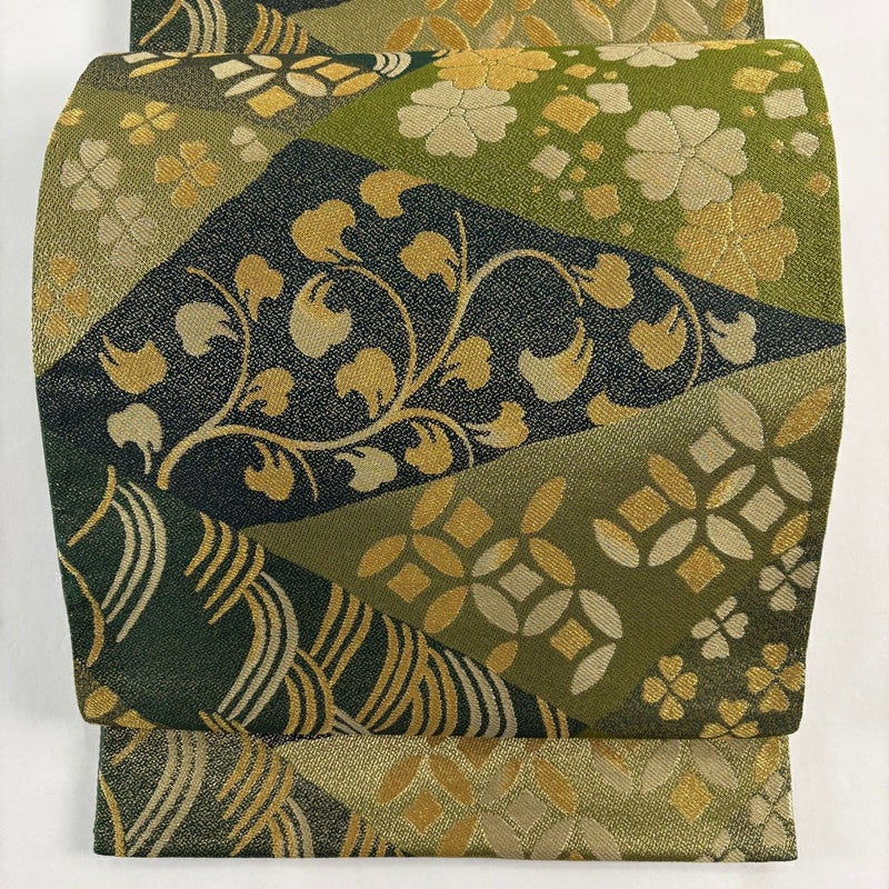 【袋帯】 緑系 よもぎ色 秀品 B 帯丈436cm以上 -3980 二万以下