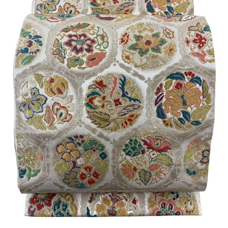 【着物ランク】秀品 【素材】正絹 【帯丈】約428cm 【帯幅】約30.5cm 【帯仕立て】仕立て上がり 【状態ランク】ランクA 【帯着用シーン】フォーマル(留袖・振袖・訪問着)
