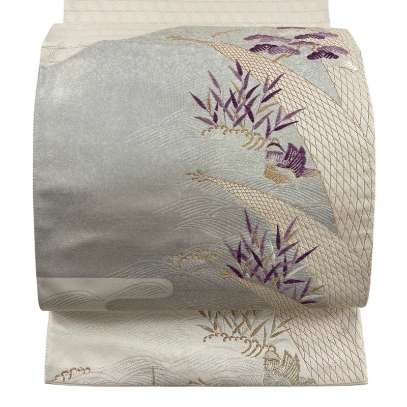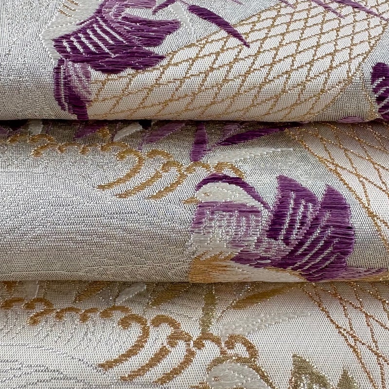 【着物ランク】逸品 【素材】正絹 【帯丈】約432cm 【帯幅】約31cm 【帯仕立て】仕立て上がり 【状態ランク】ランクA 【作家名】帝王紫 【帯着用シーン】フォーマル(留袖・振袖・訪問着)