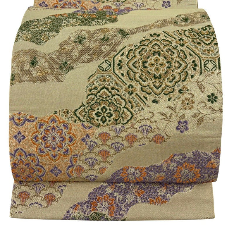 【袋帯】 灰色系 灰緑 秀品 A 帯丈426cm~435cm 7990-9980 美品 二万以下