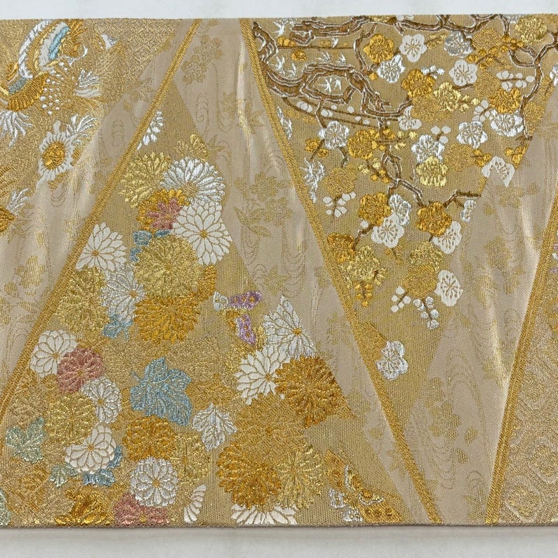 【着物ランク】秀品 【素材】正絹 【帯丈】約428cm 【帯幅】約31cm 【帯仕立て】仕立て上がり 【状態ランク】ランクB 【帯着用シーン】フォーマル(留袖・振袖・訪問着)