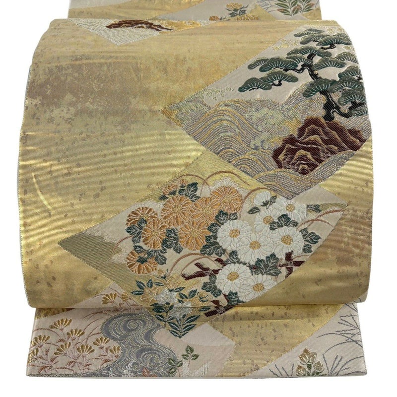 【着物ランク】秀品 【素材】正絹 【帯丈】約426cm 【帯幅】約30.5cm 【帯仕立て】仕立て上がり 【状態ランク】ランクB 【帯着用シーン】フォーマル(留袖・振袖・訪問着)