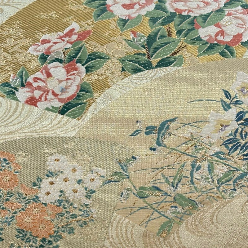 【着物ランク】秀品 【素材】正絹 【帯丈】約434cm 【帯幅】約31cm 【帯仕立て】仕立て上がり 【状態ランク】ランクB 【帯着用シーン】フォーマル(留袖・振袖・訪問着)