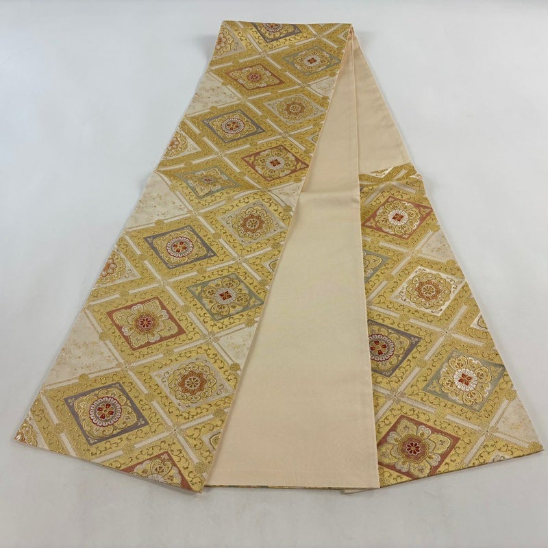 【袋帯】 白系 ベージュ 秀品 A 帯丈436cm以上 7990-9980 美品 二万以下