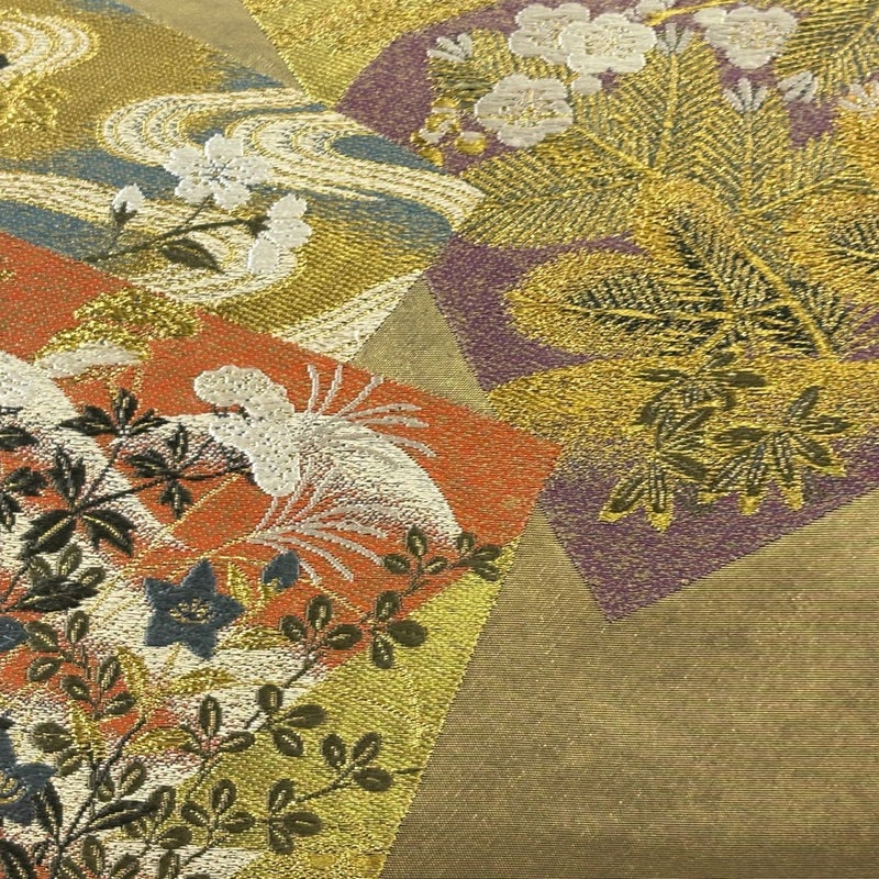 おめでたい席に相応しい意匠の袋帯でございます。 格式高いお席にもお使いいただけますので、お見逃しのないようお願いいたします。 締め跡がございます。 リユース品としては目立った染み傷なく、状態の良いお品でございます。 ※なお、厳しく商品の状態確認を行っておりますが、記載の汚れ以外にも見落とし箇所がある可能性がある旨ご了承いただけますと幸いです。 沢山の商品の中からご覧いただき誠にありがとうございます。
