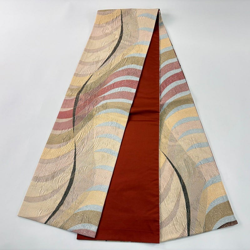 【着物ランク】秀品 【素材】正絹 【帯丈】約452cm 【帯幅】約30.5cm 【帯仕立て】仕立て上がり 【状態ランク】ランクA 【帯着用シーン】普段使いの洒落帯(紬・小紋)