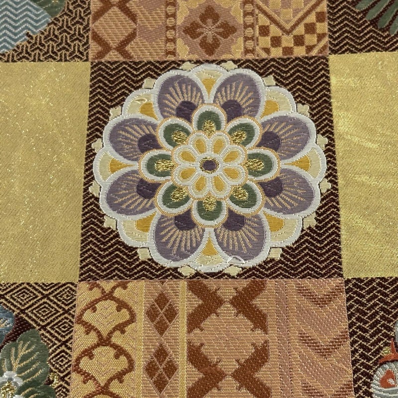 おめでたい席に相応しい意匠の袋帯でございます。 格式高いお席にもお使いいただけますので、お見逃しのないようお願いいたします。 締め跡がございます。 中無地にシミ、中無地締め跡沿いに薄汚れ、表地所々とお太鼓付近と中無地にシワ、表地所々とお太鼓に糸ゆるみ、表地所々に箔の傷みがございます。 裏地所々にシワがございます。 リユース品としては良い状態で、まだまだご活用頂けると思われます。 ※なお、厳しく商品の状態確認を行っておりますが、記載の汚れ以外にも見落とし箇所がある可能性がある旨ご了承いただけますと幸いです。 沢山の商品の中からご覧いただき誠にありがとうございます。