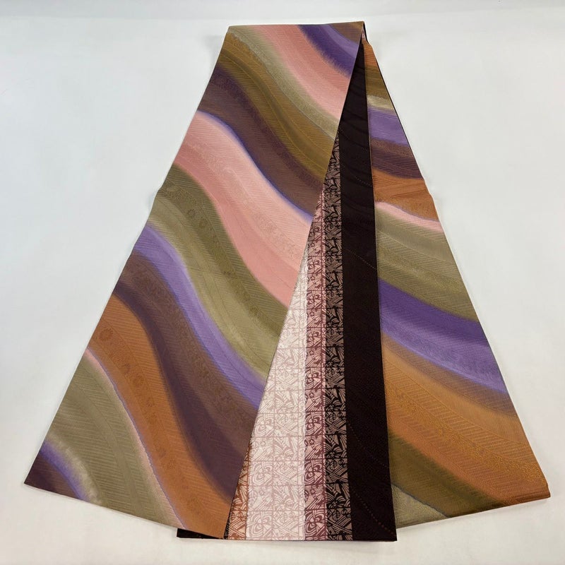 【袋帯】 茶系 茶緑色 秀品 A 帯丈436cm以上 7990-9980 美品 二万以下
