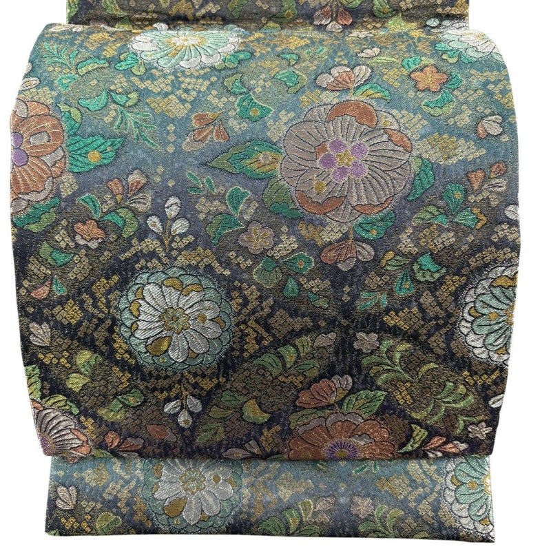 【袋帯】 灰色系 灰緑 秀品 A 帯丈436cm以上 7990-9980 美品 二万以下
