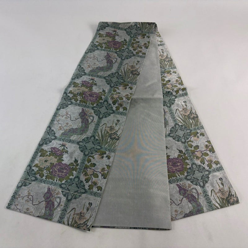 【袋帯】 灰色系 灰緑 秀品 A 帯丈436cm以上 7990-9980 美品 二万以下