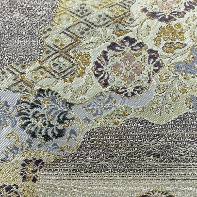 セミフォーマルでお使いいただける袋帯でございます。 見る人に重たい印象を感じさせない女性ならではの、気品豊かな一品です。 締め跡がございます。 リユース品としては目立った染み傷なく、状態の良いお品でございます。 ※なお、厳しく商品の状態確認を行っておりますが、記載の汚れ以外にも見落とし箇所がある可能性がある旨ご了承いただけますと幸いです。 沢山の商品の中からご覧いただき誠にありがとうございます。
