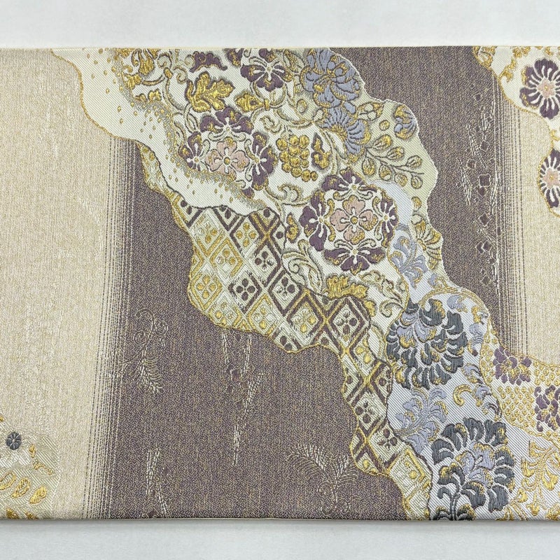 【袋帯】 白系 ベージュ 名品 A 帯丈426cm~435cm 9990-29990 美品 二万以下
