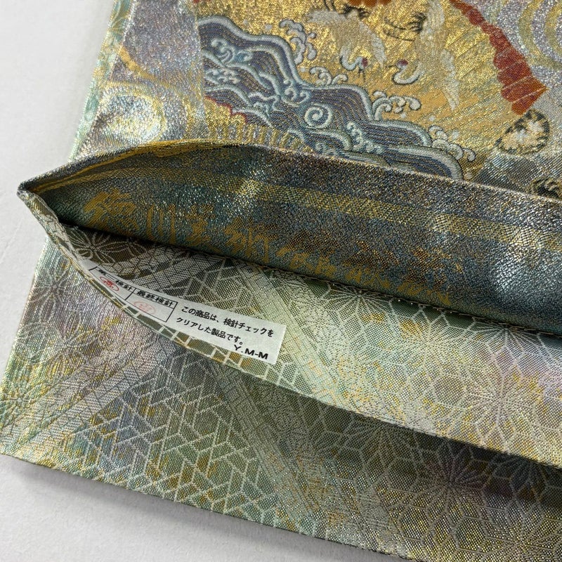 おめでたい席に相応しい意匠の袋帯でございます。 格式高いお席にもお使いいただけますので、お見逃しのないようお願いいたします。 締め跡がございます。 リユース品としては目立った染み傷なく、状態の良いお品でございます。 ※なお、厳しく商品の状態確認を行っておりますが、記載の汚れ以外にも見落とし箇所がある可能性がある旨ご了承いただけますと幸いです。 沢山の商品の中からご覧いただき誠にありがとうございます。