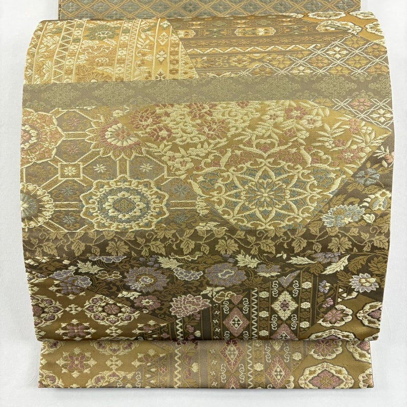 【袋帯】 茶系 茶緑色 名品 A 帯丈436cm以上 9990-29990 美品 二万以下