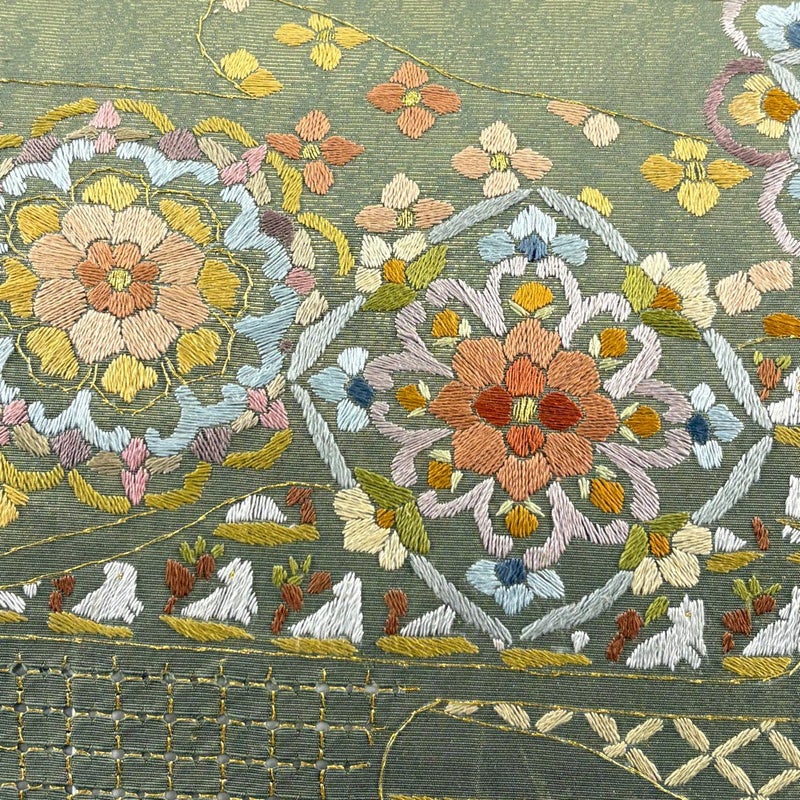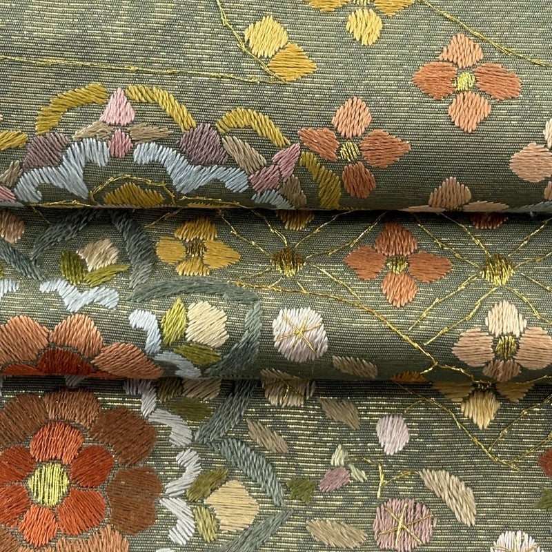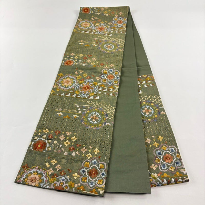 【袋帯】 緑系 よもぎ色 逸品 A 帯丈436cm以上 30000- 美品 五万以下