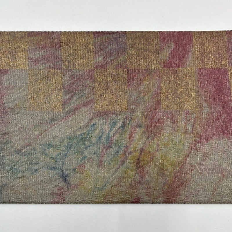 【美品】 袋帯 名品 市松 箔 金糸 灰色 六通 正絹