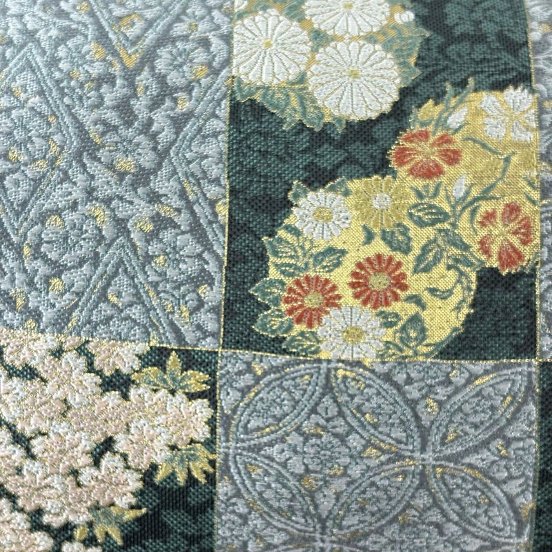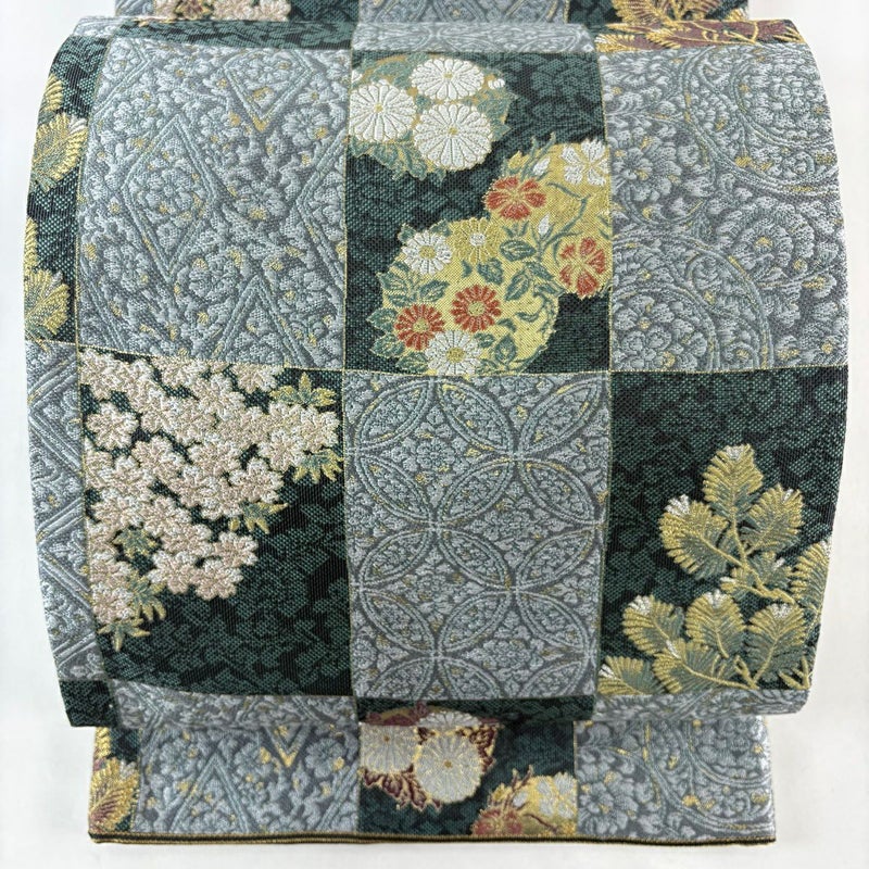 【袋帯】 灰色系 灰緑 名品 A 帯丈426cm~435cm 9990-29990 美品 二万以下