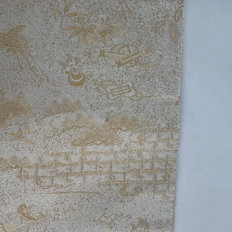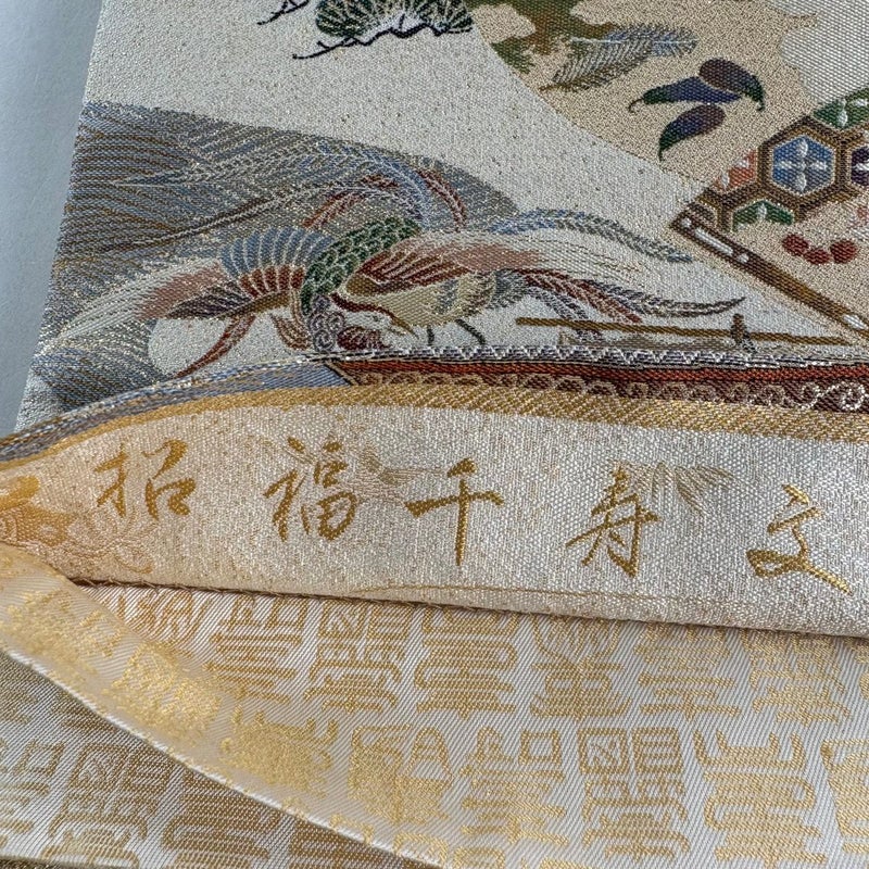 おめでたい席に相応しい意匠の袋帯でございます。 格式高いお席にもお使いいただけますので、お見逃しのないようお願いいたします。 リユース品としては目立った染み傷なく、状態の良いお品でございます。 ※なお、厳しく商品の状態確認を行っておりますが、記載の汚れ以外にも見落とし箇所がある可能性がある旨ご了承いただけますと幸いです。 沢山の商品の中からご覧いただき誠にありがとうございます。
