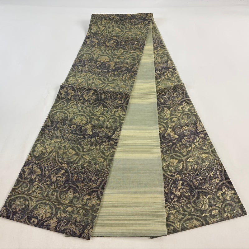 【袋帯】 緑系 抹茶色 名品 A 帯丈436cm以上 9990-29990 美品 二万以下