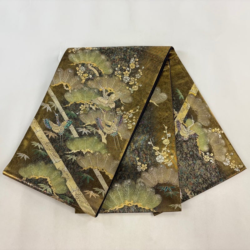 おめでたい席に相応しい意匠の袋帯でございます。 格式高いお席にもお使いいただけますので、お見逃しのないようお願いいたします。 締め跡がございます。 お太鼓付近に若干金彩の剥がれ、垂先と前柄に金彩の変色がございます。 リユース品としては良い状態で、まだまだご活用頂けると思われます。 ※なお、厳しく商品の状態確認を行っておりますが、記載の汚れ以外にも見落とし箇所がある可能性がある旨ご了承いただけますと幸いです。 沢山の商品の中からご覧いただき誠にありがとうございます。 【PR2】