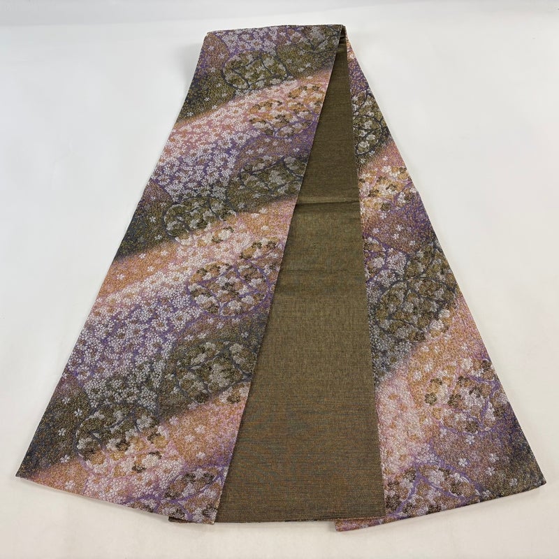 【着物ランク】名品 【素材】正絹 【帯丈】約444cm 【帯幅】約30.5cm 【帯仕立て】仕立て上がり 【状態ランク】ランクA 【帯着用シーン】セミフォーマル(色無地・付下げ)