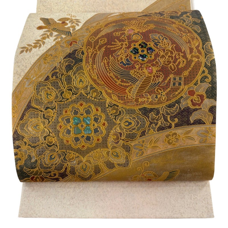【着物ランク】名品 【素材】正絹 【帯丈】約428cm 【帯幅】約31.5cm 【帯仕立て】仕立て上がり 【状態ランク】ランクA 【帯着用シーン】フォーマル(留袖・振袖・訪問着)