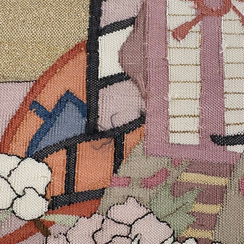 セミフォーマルでお使いいただける袋帯でございます。 見る人に重たい印象を感じさせない女性ならではの、気品豊かな一品です。 締め跡がございます。 表地所々にシミ、お太鼓柄部分と前柄柄部分に糸のほつれ、お太鼓柄部分と前柄柄部分に金糸の変色がございます。 裏地所々にシミがございます。 リユース品としては良い状態で、まだまだご活用頂けると思われます。 ※なお、厳しく商品の状態確認を行っておりますが、記載の汚れ以外にも見落とし箇所がある可能性がある旨ご了承いただけますと幸いです。 沢山の商品の中からご覧いただき誠にありがとうございます。 【PR2】