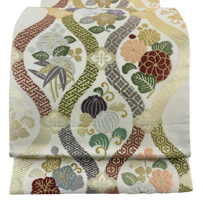 【袋帯】 白系 ベージュ 逸品 A 帯丈436cm以上 30000- 美品 五万以下