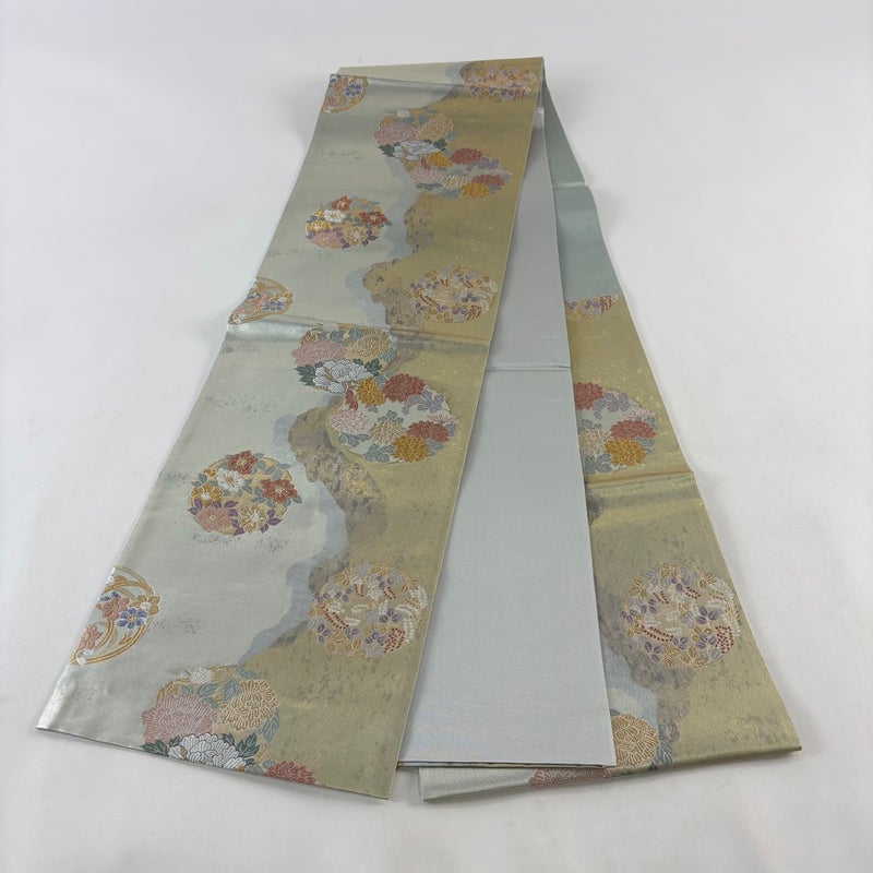 【袋帯】 灰色系 灰緑 秀品 A 帯丈436cm以上 7990-9980 美品 二万以下
