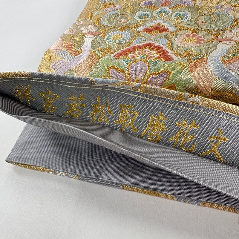 おめでたい席に相応しい意匠の袋帯でございます。 格式高いお席にもお使いいただけますので、お見逃しのないようお願いいたします。 帯芯が入っておりません。 締め跡がございます。 中無地所々にシワがございます。 リユース品としては目立った染み傷なく、状態の良いお品でございます。 ※なお、厳しく商品の状態確認を行っておりますが、記載の汚れ以外にも見落とし箇所がある可能性がある旨ご了承いただけますと幸いです。 沢山の商品の中からご覧いただき誠にありがとうございます。
