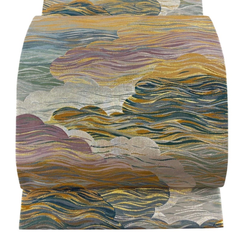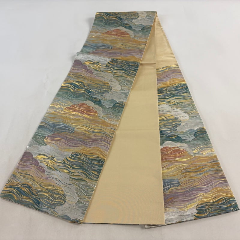 【袋帯】 灰色系 灰緑 秀品 A 帯丈426cm~435cm 7990-9980 美品 二万以下