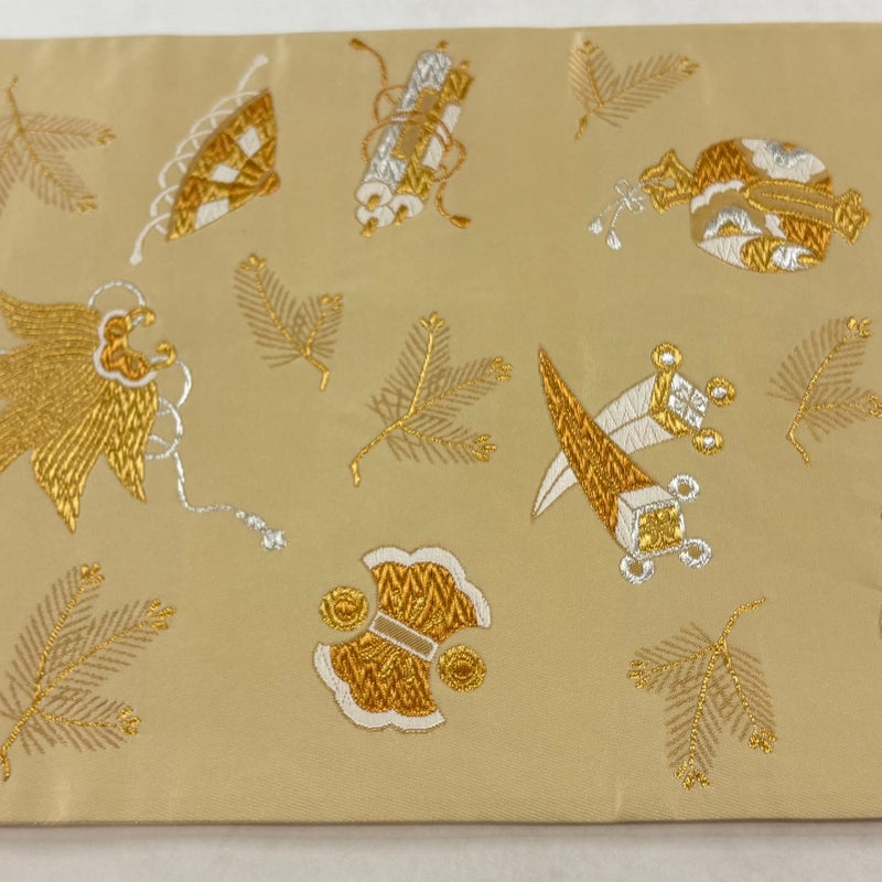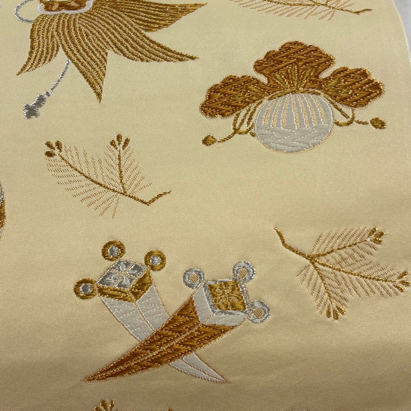 おめでたい席に相応しい意匠の袋帯でございます。 格式高いお席にもお使いいただけますので、お見逃しのないようお願いいたします。 ※締め跡がお太鼓を含む帯全体にございます。 ※締め跡がお太鼓を含む裏地全体にございます。 お太鼓垂先間と手先前柄間に小さなシミがございます。 リユース品としては良い状態で、まだまだご活用頂けると思われます。 ※なお、厳しく商品の状態確認を行っておりますが、記載の汚れ以外にも見落とし箇所がある可能性がある旨ご了承いただけますと幸いです。 沢山の商品の中からご覧いただき誠にありがとうございます。