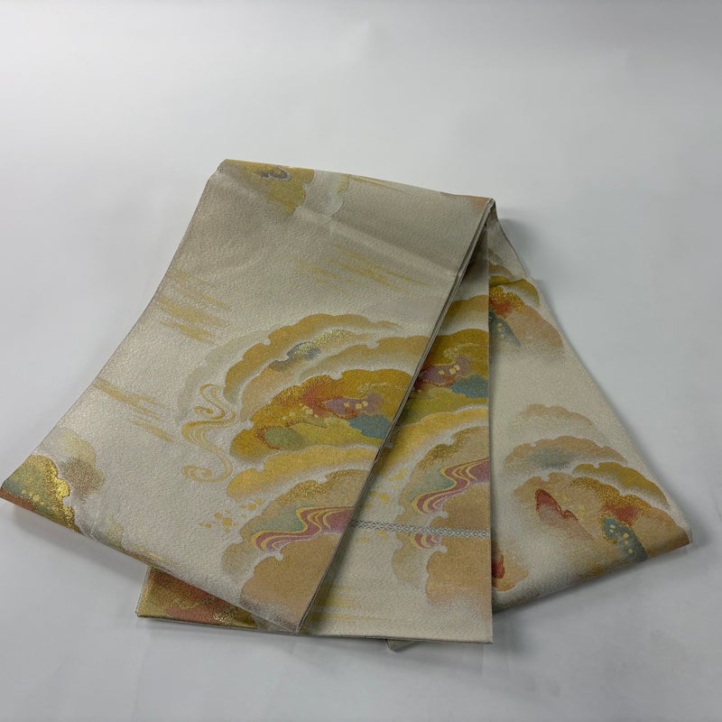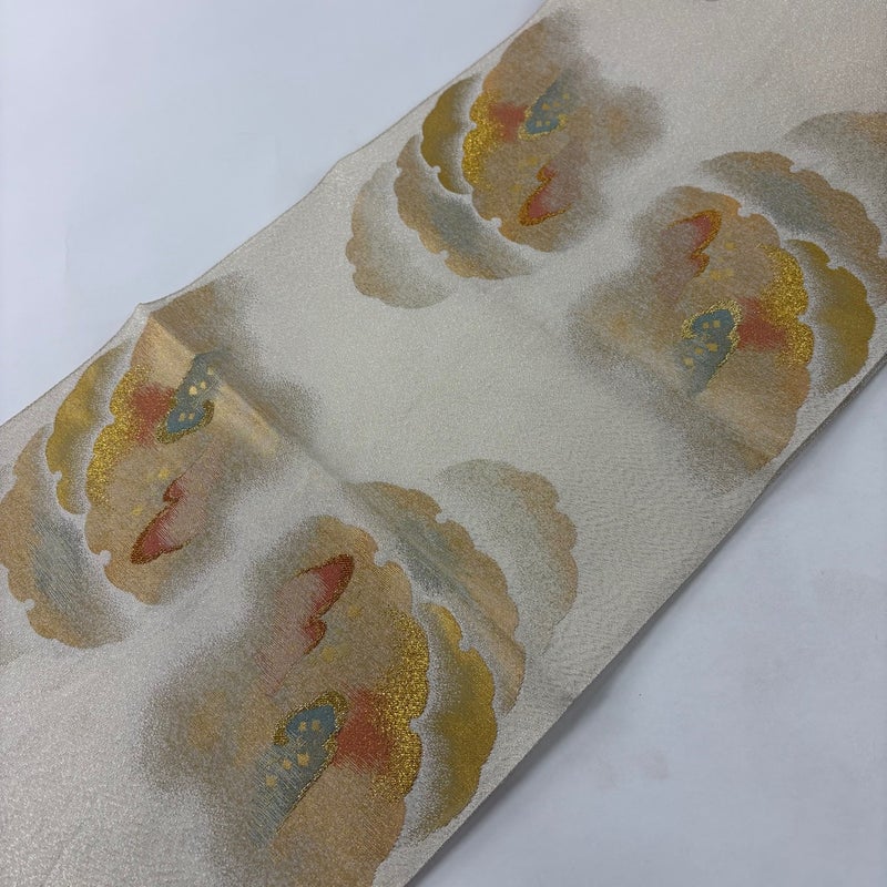 【袋帯】 白系 クリーム 秀品 A 帯丈436cm以上 7990-9980 美品 二万以下
