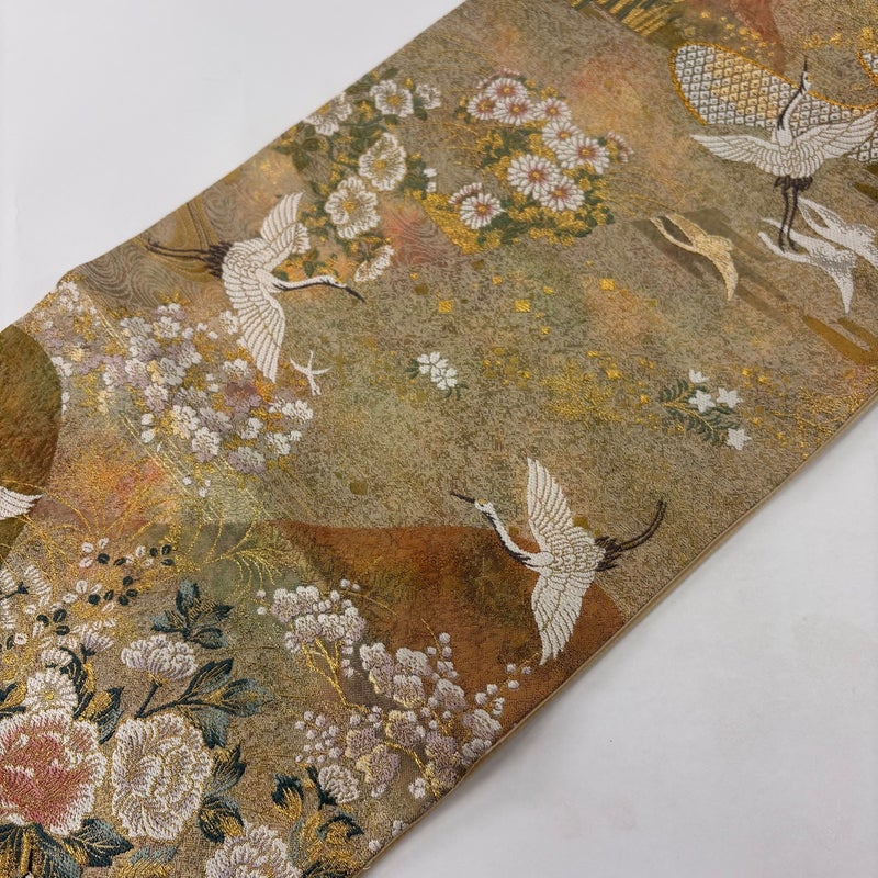 おめでたい席に相応しい意匠の袋帯でございます。 格式高いお席にもお使いいただけますので、お見逃しのないようお願いいたします。 締め跡がございます。 リユース品としては目立った染み傷なく、状態の良いお品でございます。 ※なお、厳しく商品の状態確認を行っておりますが、記載の汚れ以外にも見落とし箇所がある可能性がある旨ご了承いただけますと幸いです。 沢山の商品の中からご覧いただき誠にありがとうございます。