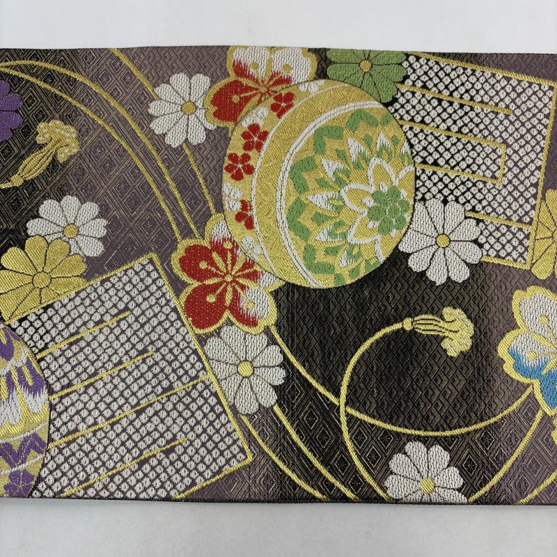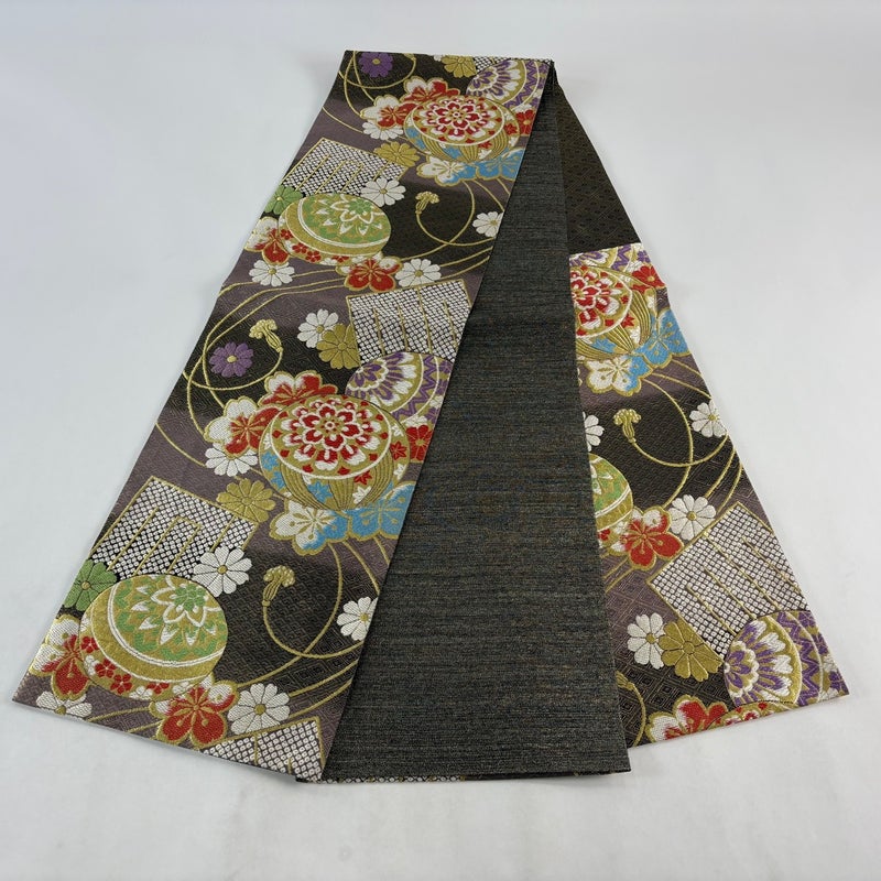 【袋帯】 灰色系 灰紫 秀品 A 帯丈426cm~435cm 7990-9980 美品 二万以下